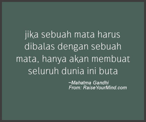 jika sebuah mata harus dibalas dengan sebuah mata, hanya akan membuat seluruh dunia ini buta A nice motivational quote from Mahatma Gandhi 24 April 2016 In Motivational & Inspirational Quotes Depression grief inspirational Life Love quotes Mahatma Gandhi motivational relationship ← Previous post Next post →