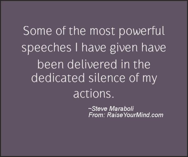 Some of the most powerful speeches I have given have been delivered in the dedicated silence of my actions. A nice motivational quote from Steve Maraboli 9 March 2016 In Motivational & Inspirational Quotes Failure inspirational motivational Steve Maraboli Success quotes the-fortune-in-failing ← Previous post Next post →
