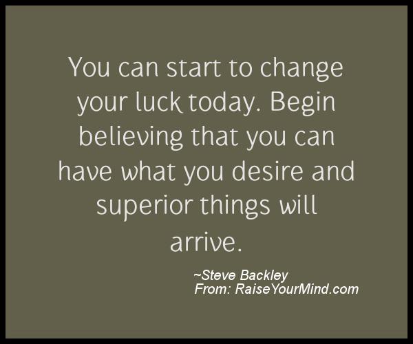 You can start to change your luck today. Begin believing that you can have what you desire and superior things will arrive. A nice motivational quote from Steve Backley 25 May 2016 In Motivational & Inspirational Quotes motivational Steve Backley ← Previous post Next post →